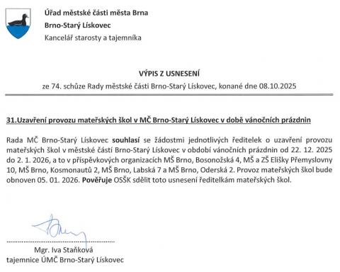 Z bezpečnostních důvodů je MŠ otevřena: